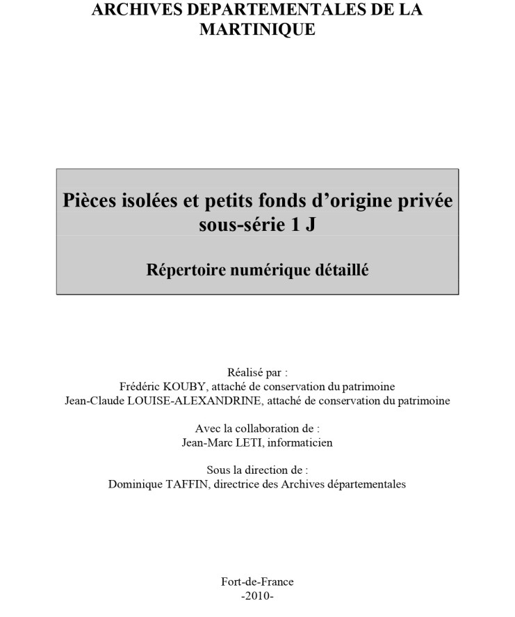 Pièces isolées et petits fonds d’origine privée - 1 J